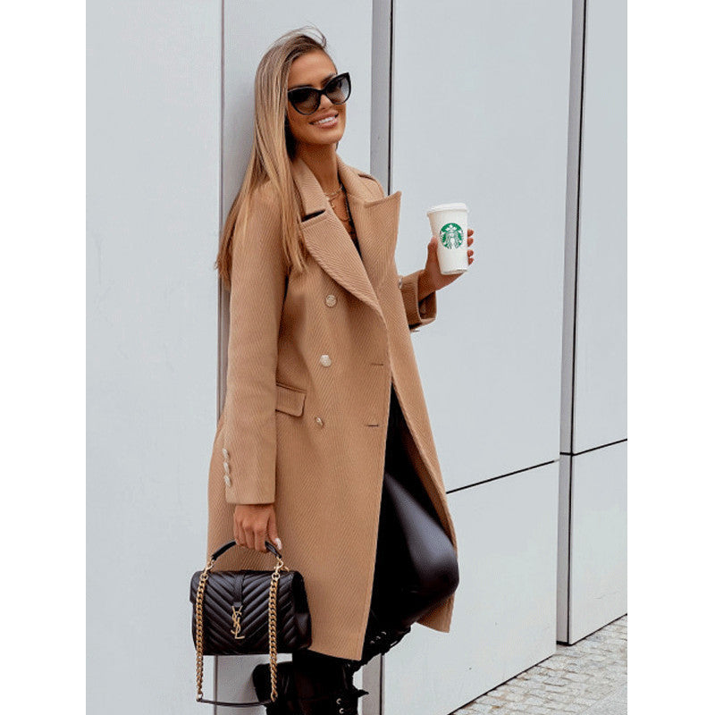 Women's New Double Breasted Mid Length Wool Coat