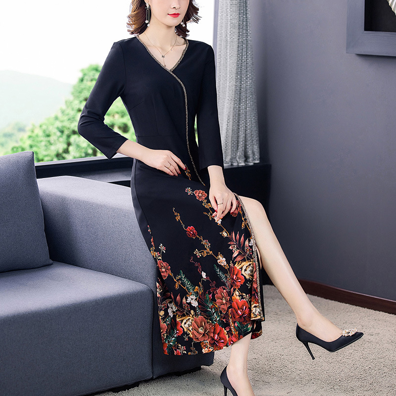 Women's Ninth Sleeve Mid-length Fashion Style Dress
