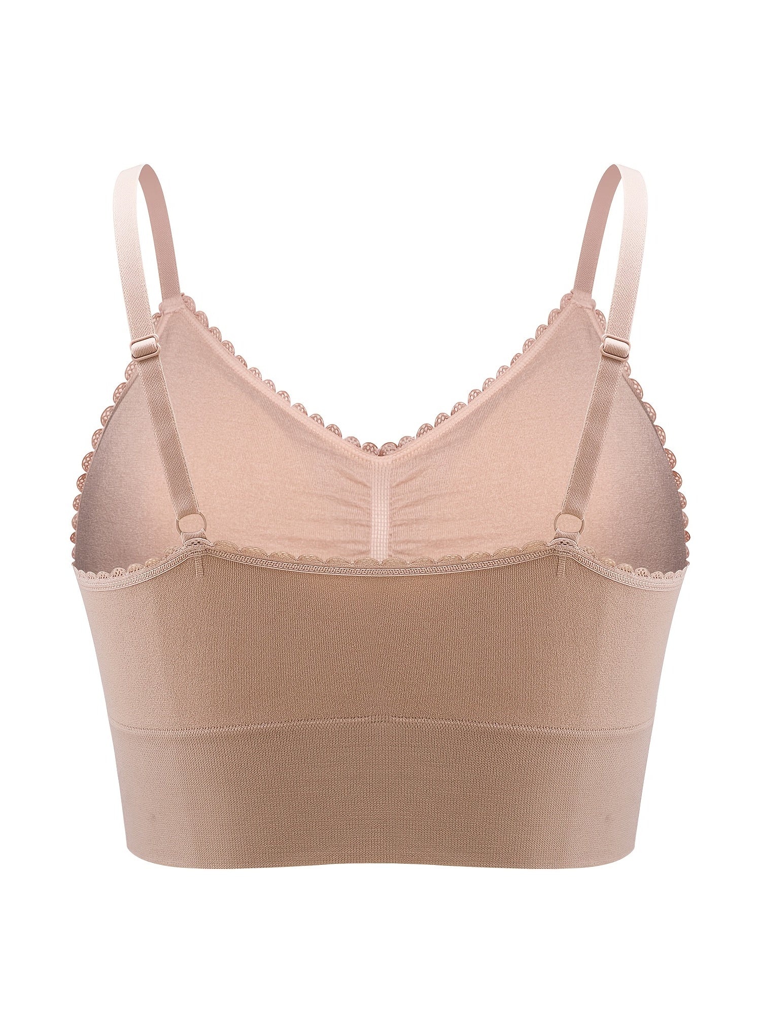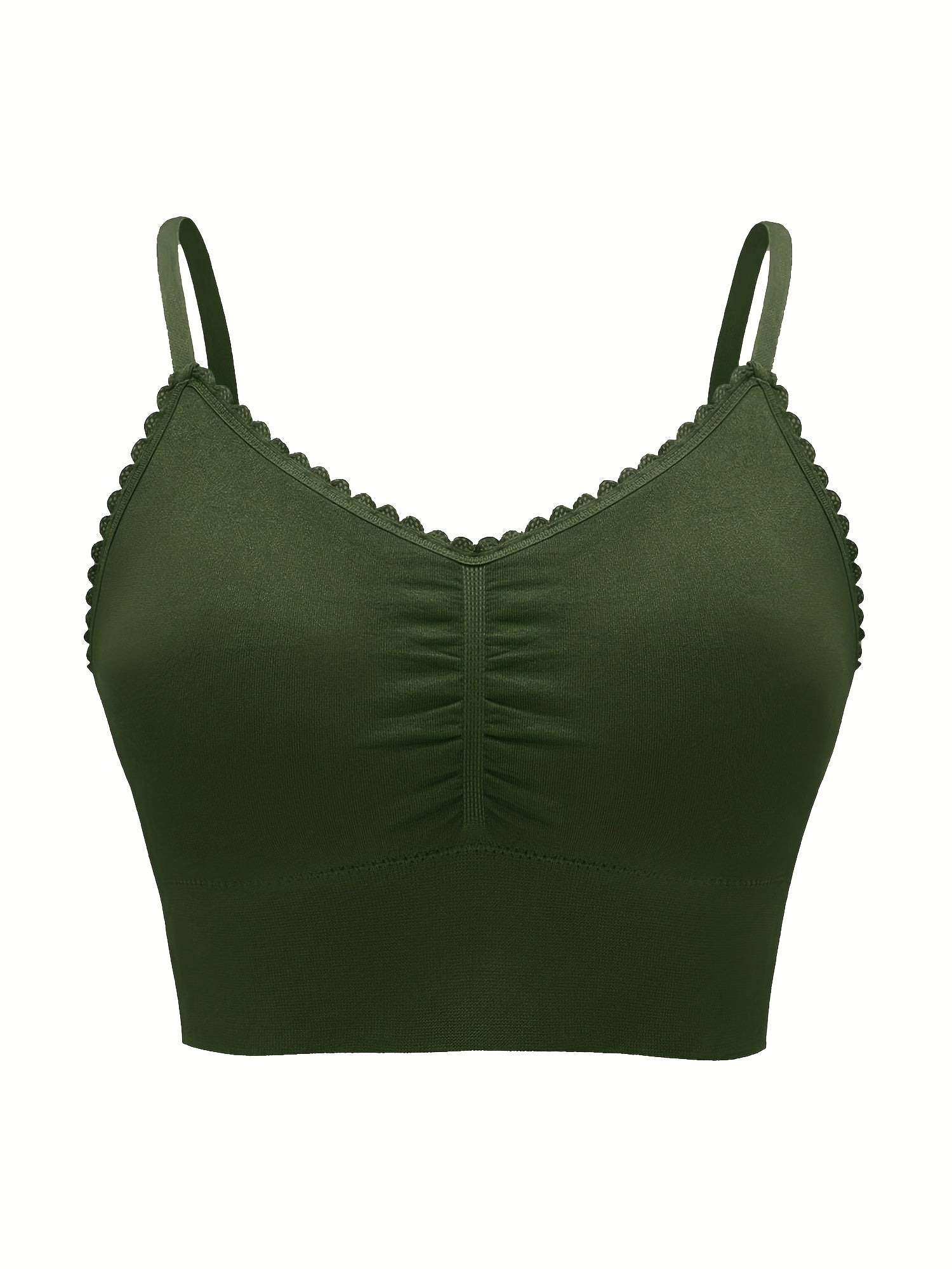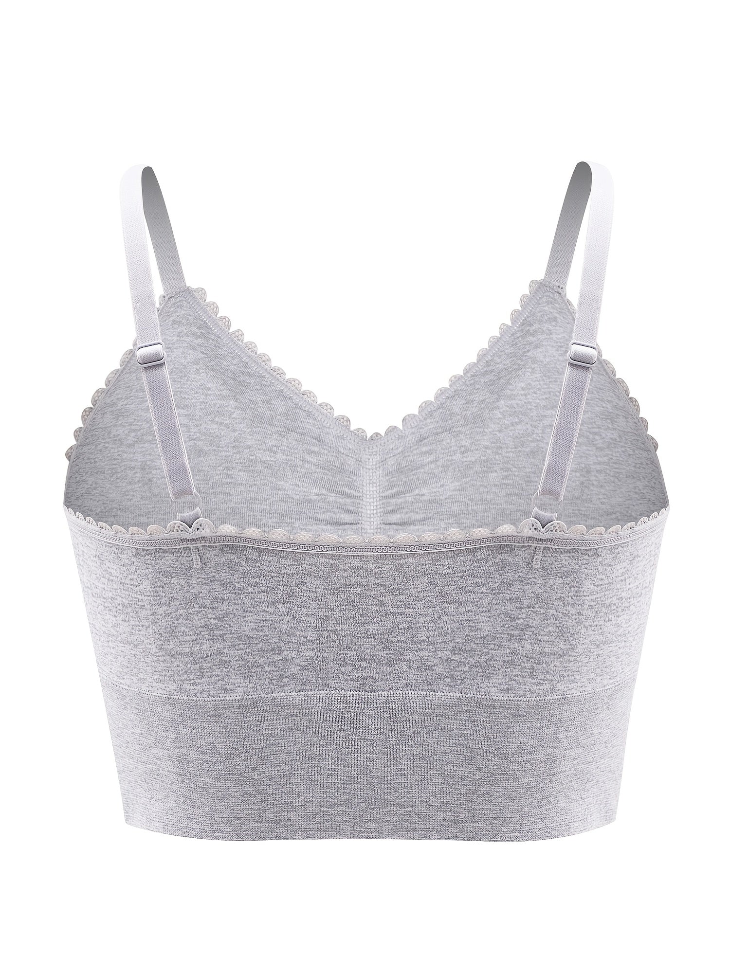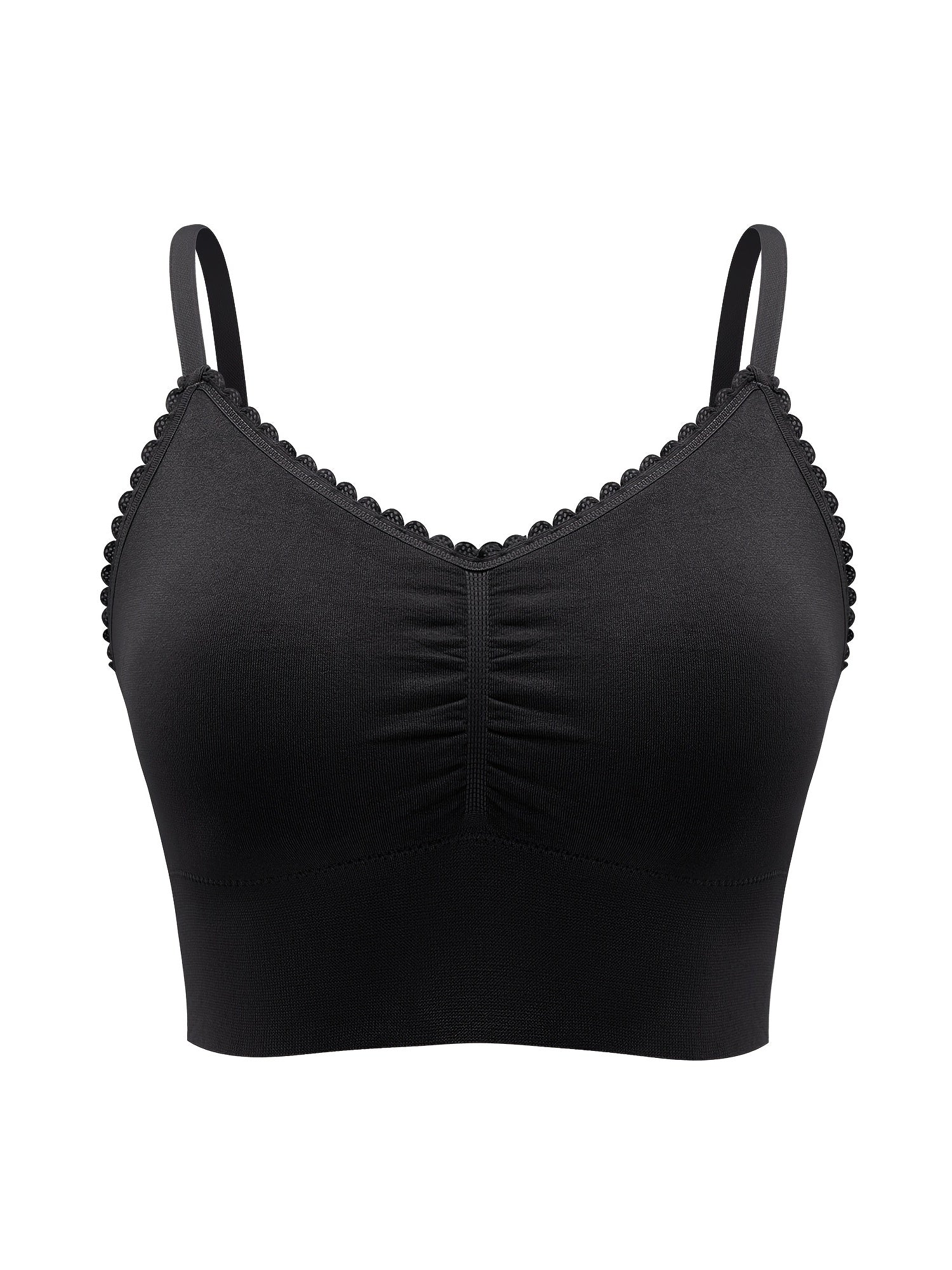 Women'S Plus Size Lace Wireless Bralette, Solid Color Polyamide 90% Elastane 10% Knit Fabric, High Stretch Comfort Full Coverage Sleep Bra, Removable Padding, Breathable Lingerie