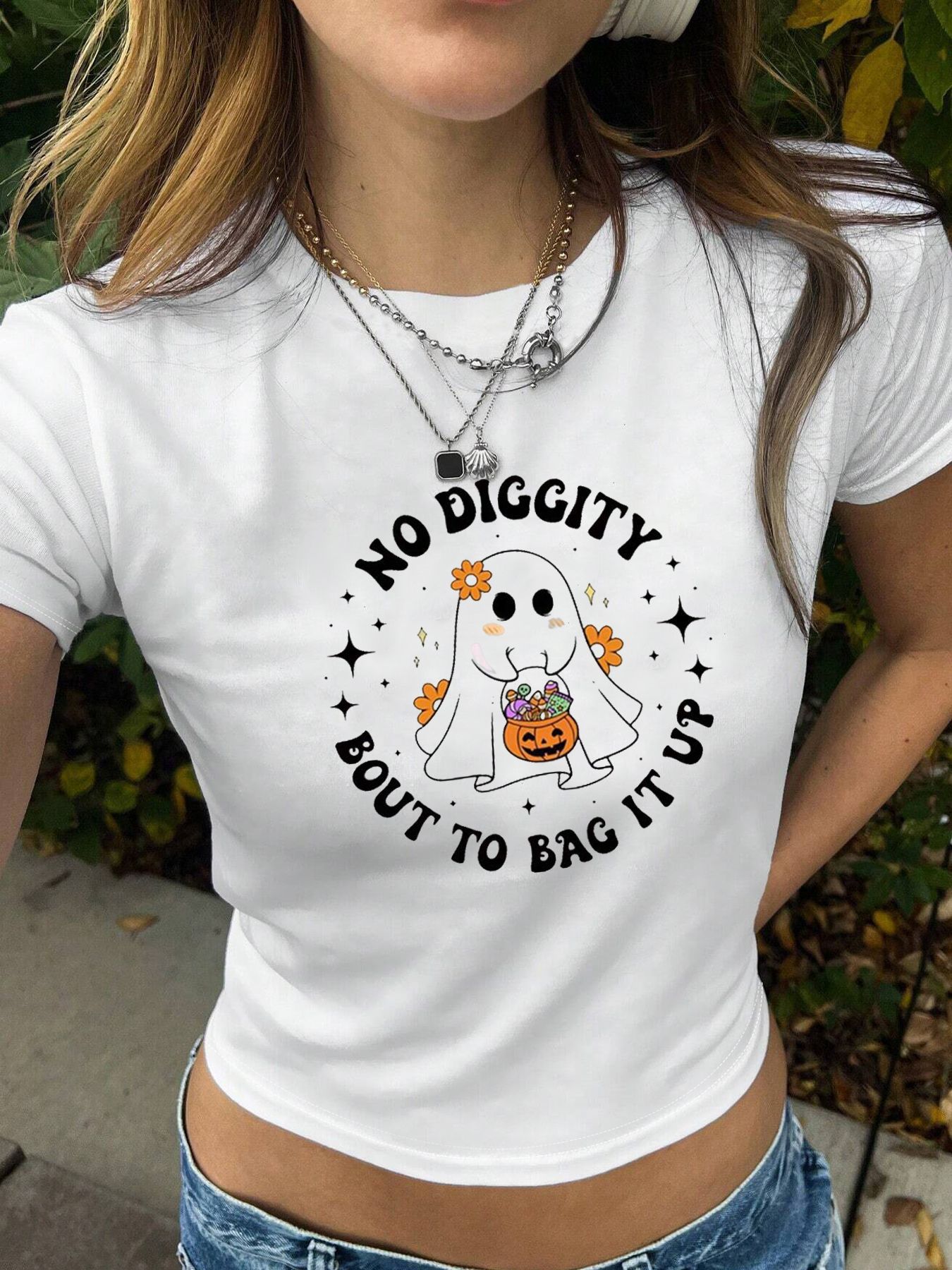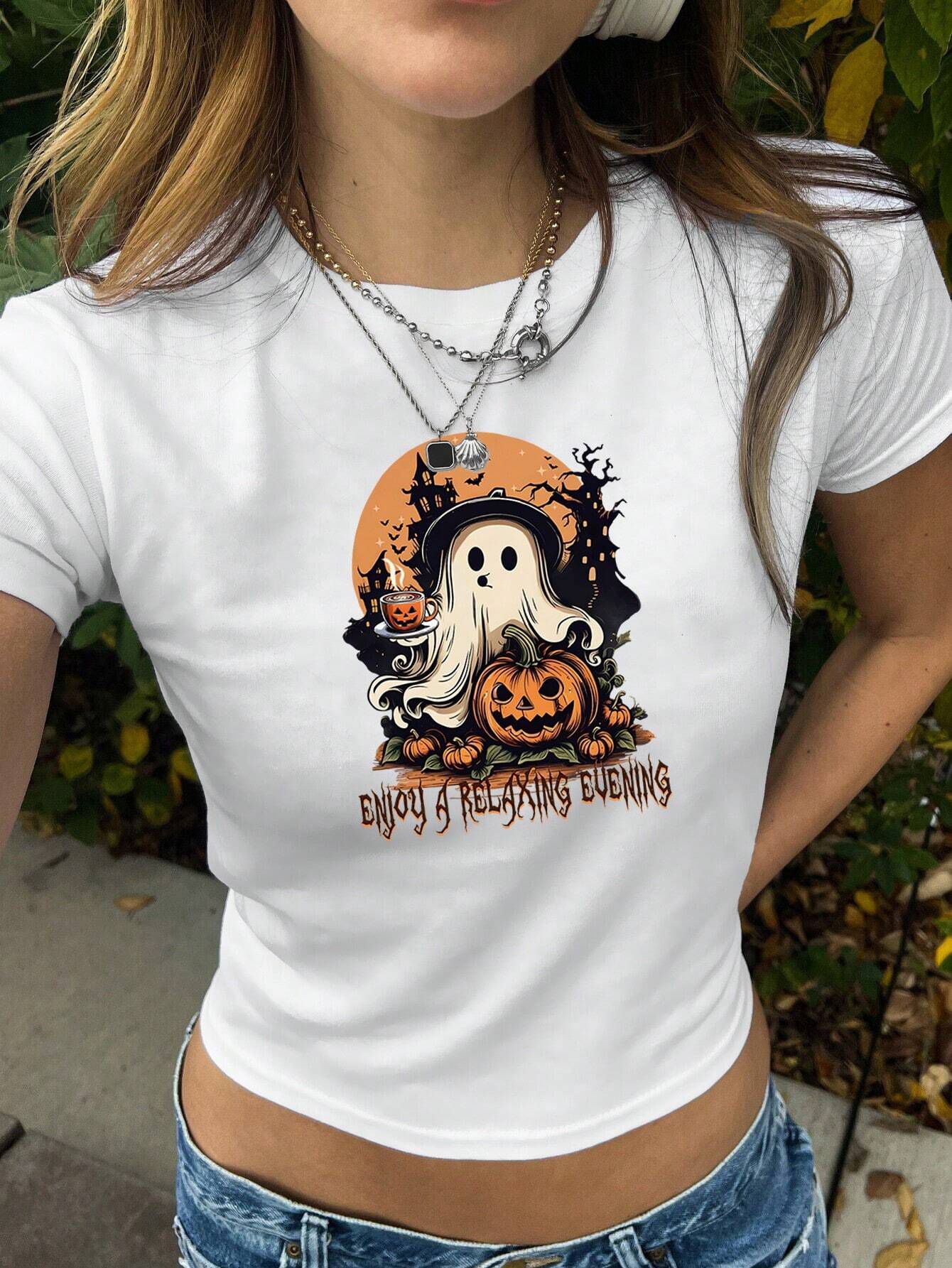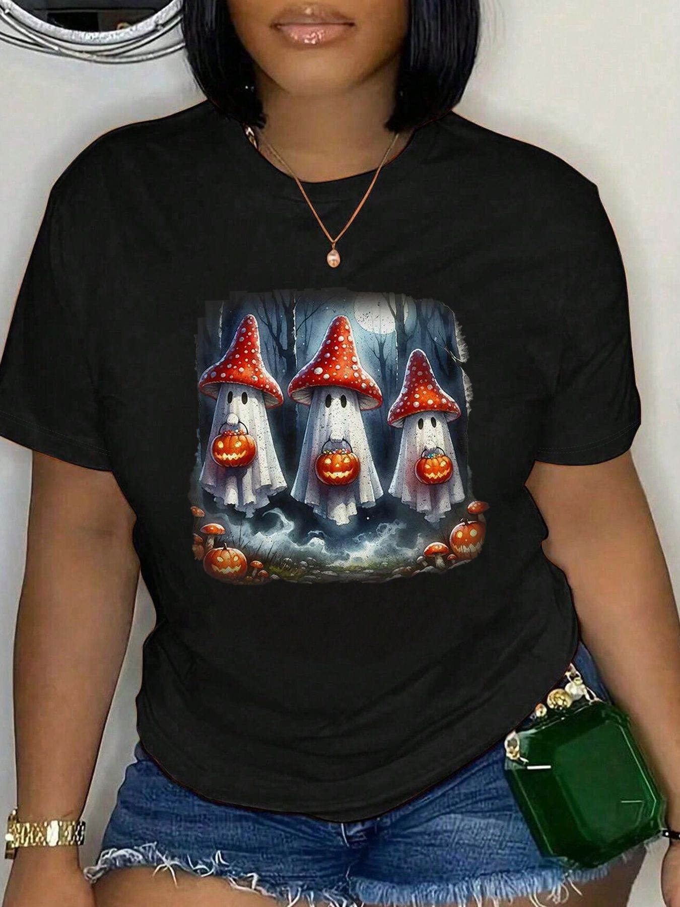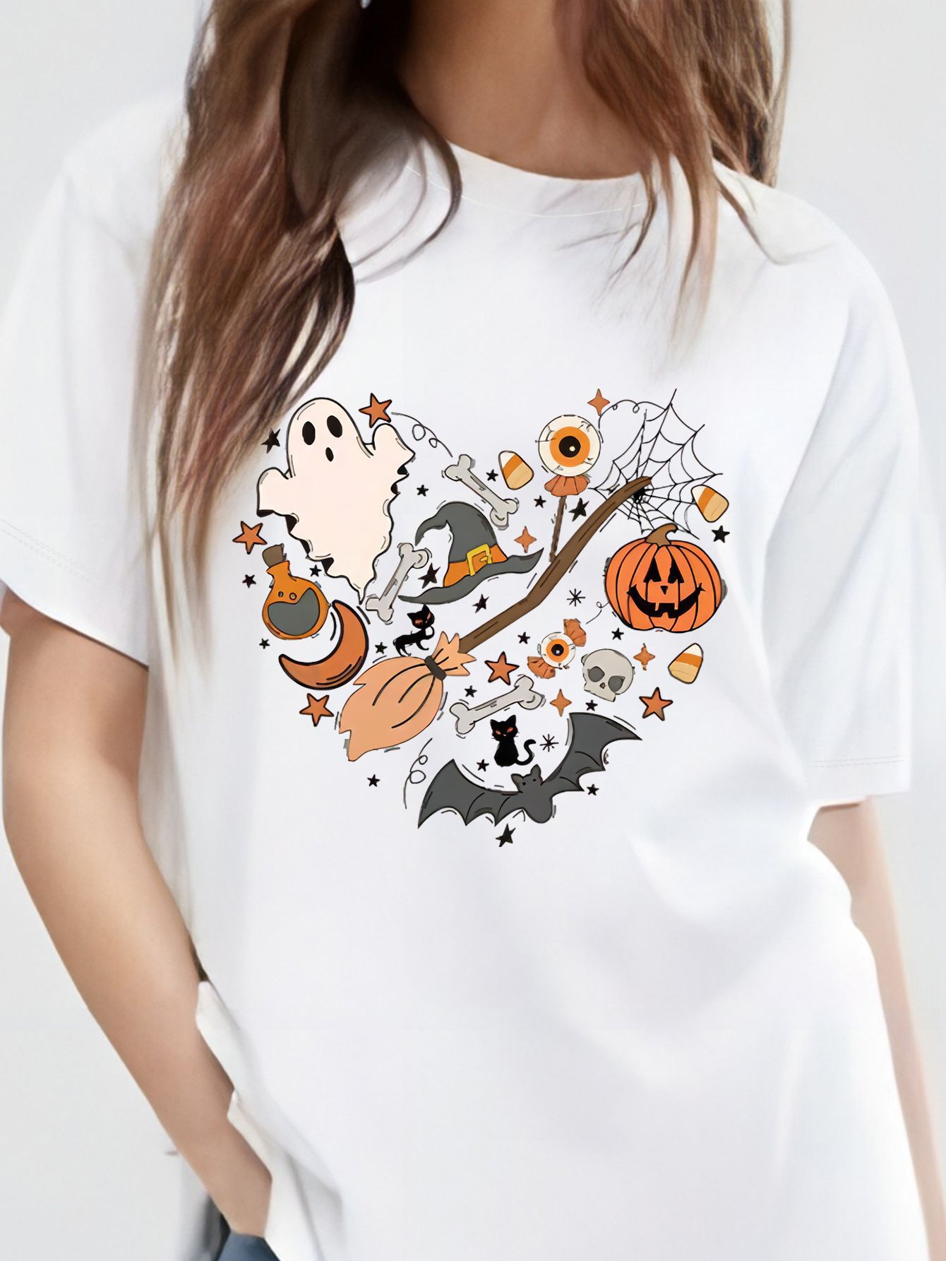 Women's Round Neck Halloween Pumpkin Print Short Sleeve
