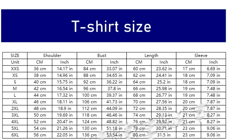 Size: S,M,L,XL,2XL,3XL,4XL,5XL