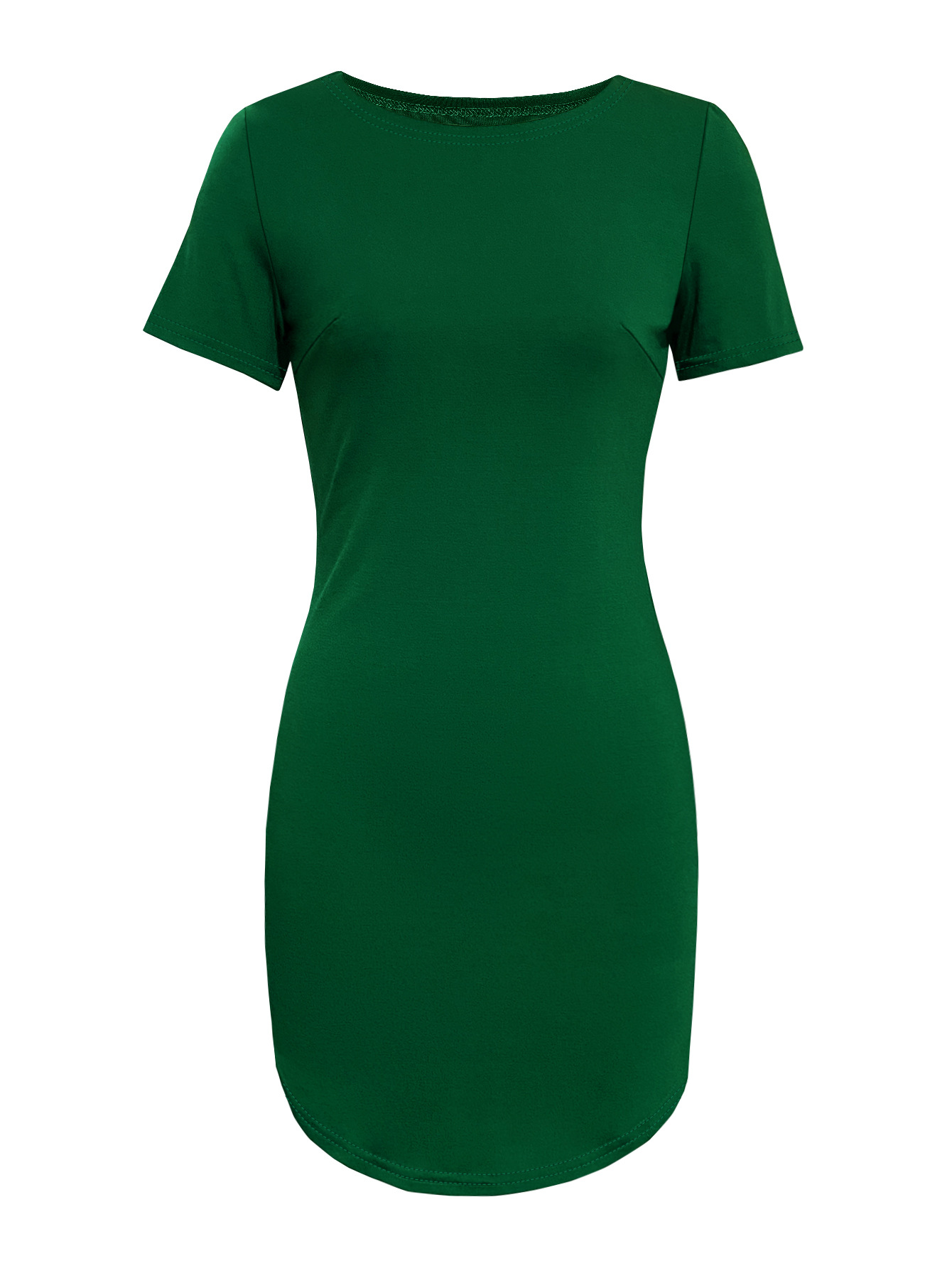 Women's Solid Color Short Sleeve Slim U-shaped Split Dress