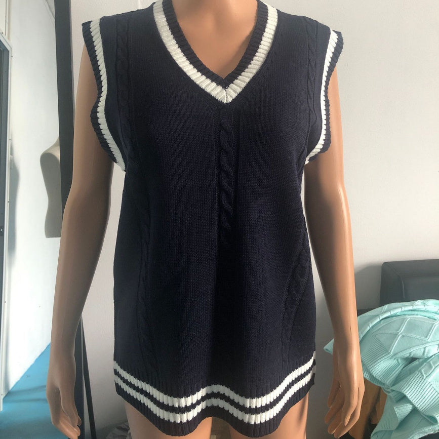 Women's Waistcoat V-neck Striped Stitching Casual Knitted Sweater
