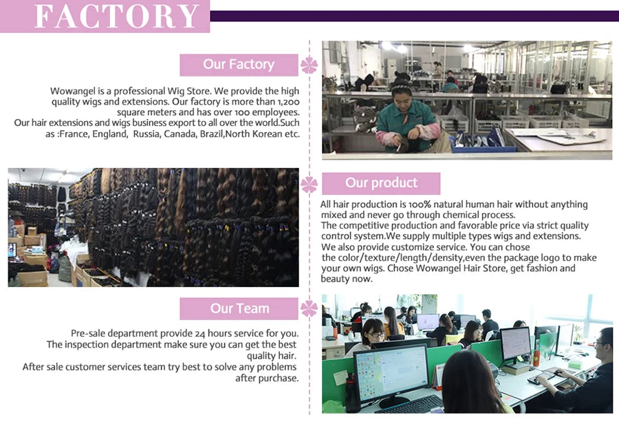 Hair Quality: 100% human hair with high quality, no shedding and tangle. Can be colored, curled and straighten.