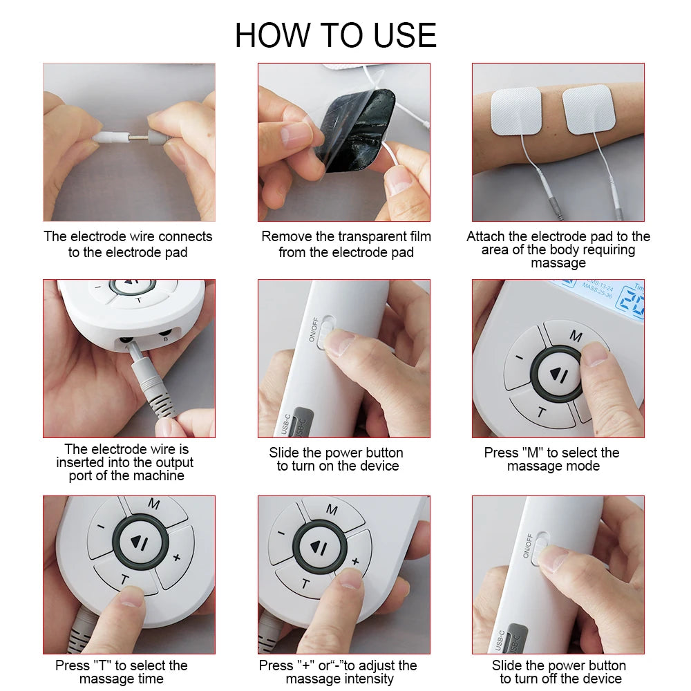 12 Modes Low Frequency Therapy Device TENS Machine EMS Muscle Stimulator Electronic Pulse Massager Myostimulation Apparatus