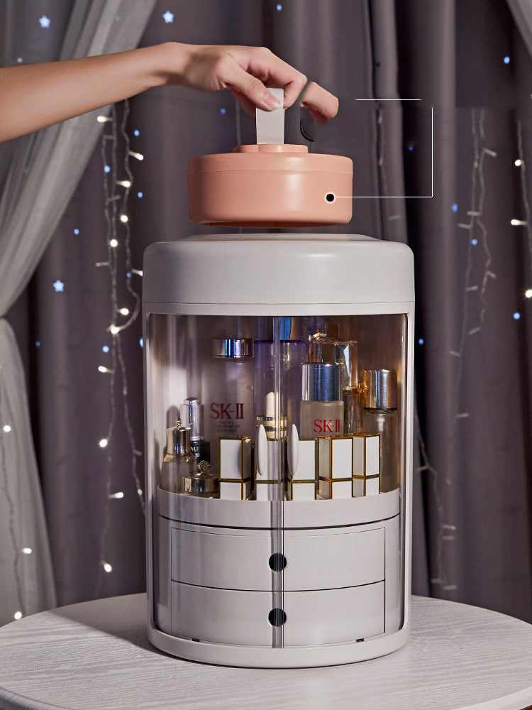Dressing Table Transparent ABS Dressing Case Double Door Round Cosmetic Box Rotating Jewelry Cosmetic Case With Drawer