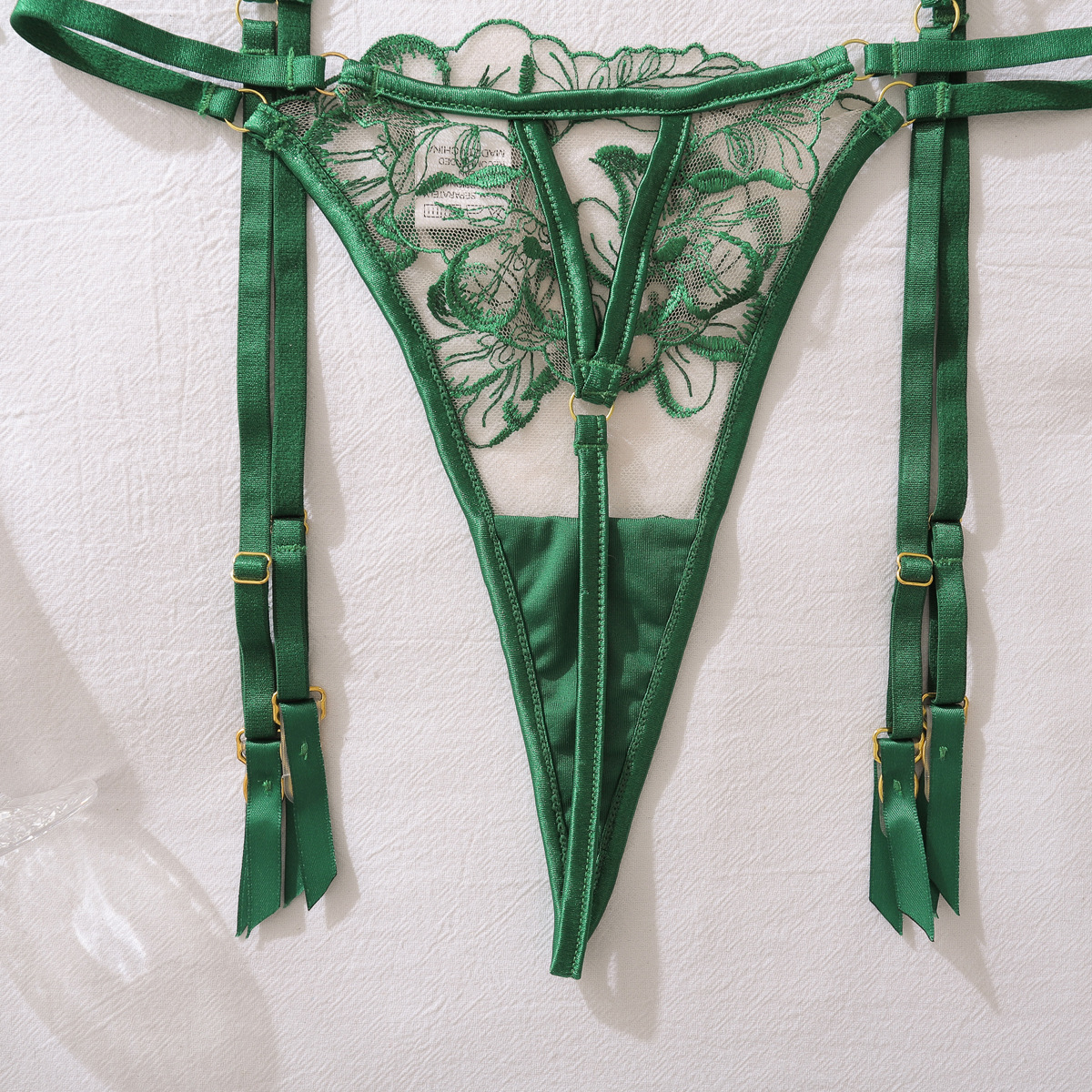 Gemstone-embellished Floral Embroidery Underwire Push-up Sheer Shapewear Sexy Lingerie