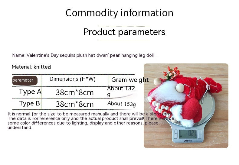 Decorative Sequins Plush Bonnet Valentine's Day Gift Dwarf Doll Pearl Hanging Leg Doll