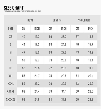 Size: XS, S, M, L, XL, XXL, XXXL, XXXXL