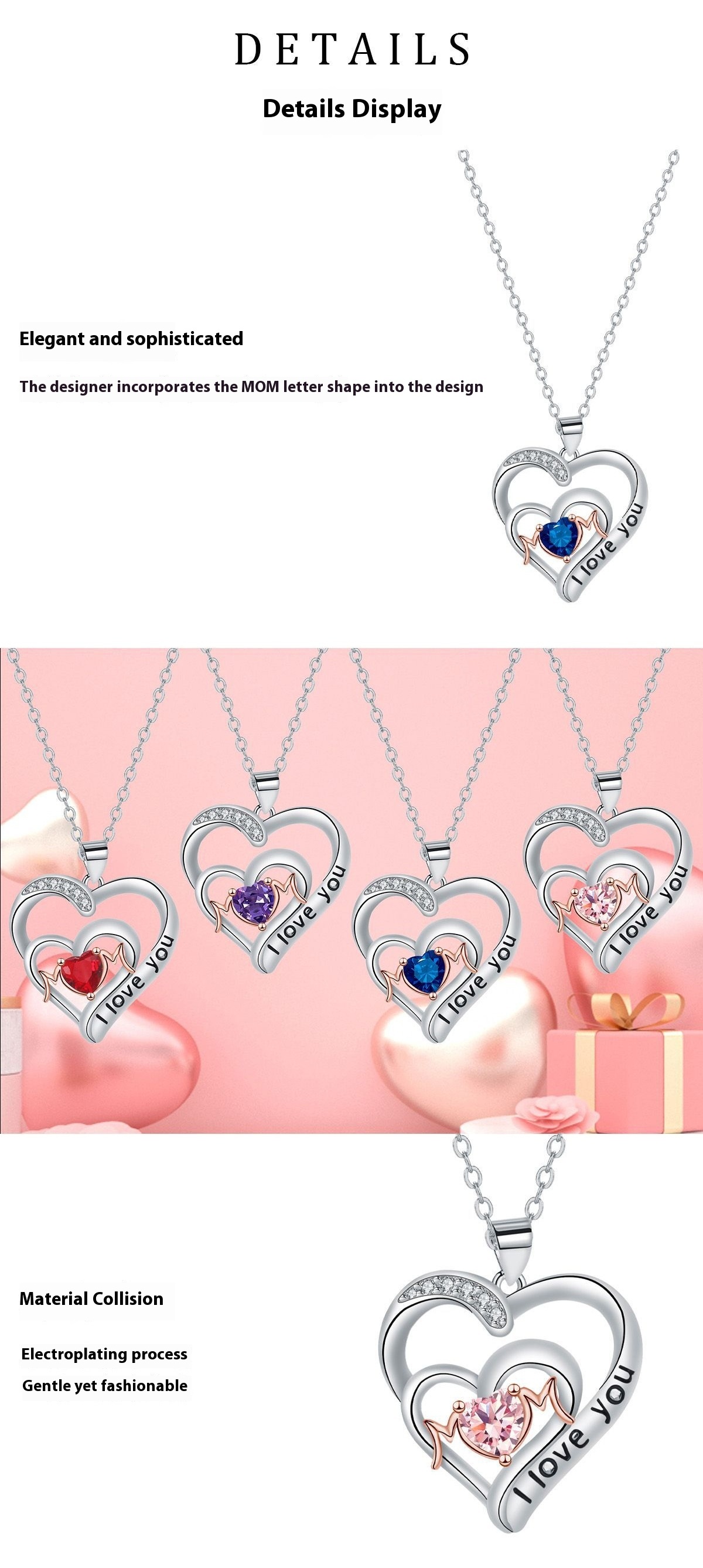 European And American Fashion New Mother's Day Gift Heart-shaped MOM Pendant Niche Necklace