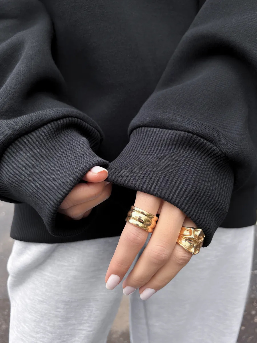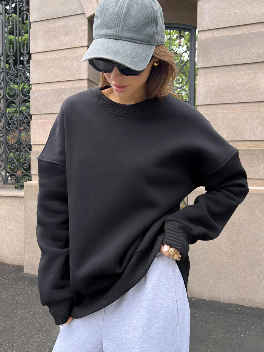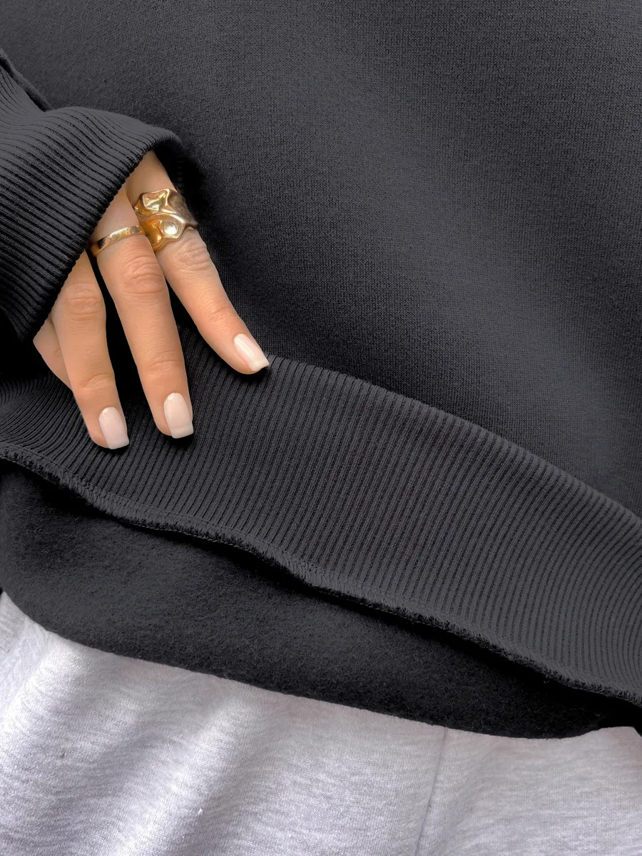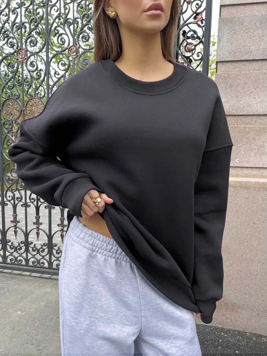 Fashionable Casual Retro Solid-color Thickened Crewneck Sweatshirt