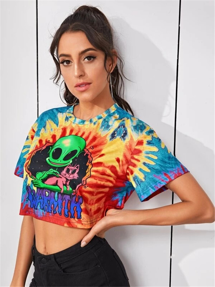 Fashionable Women's T-Shirt With Round Neck Short Sleeves And Digital Print