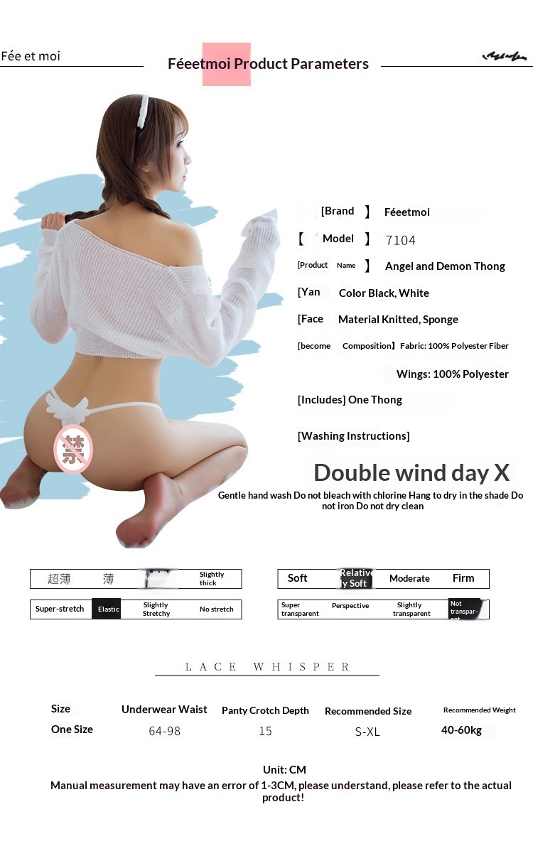 Female Solid Color Versatile Creative Devil Angel Thong