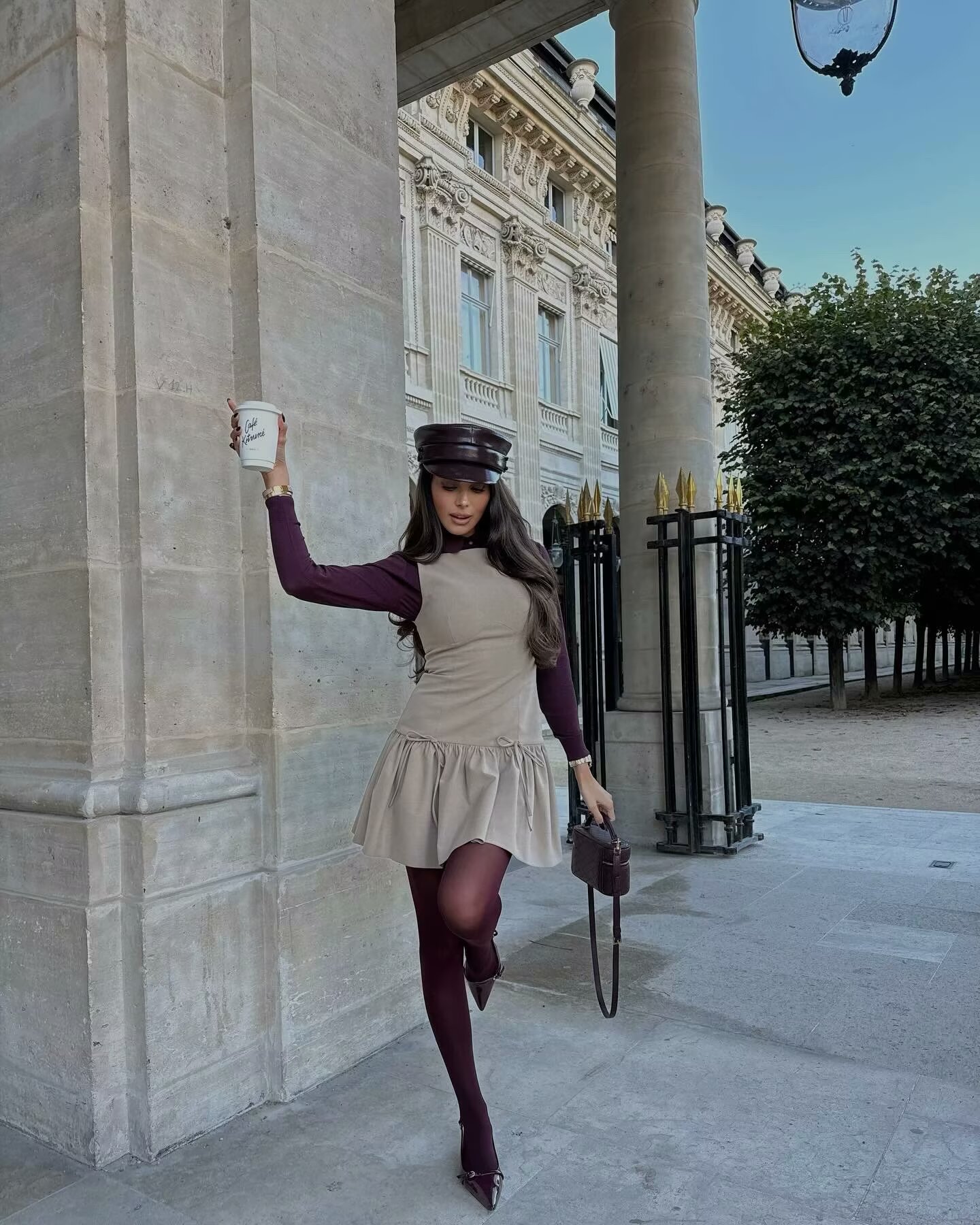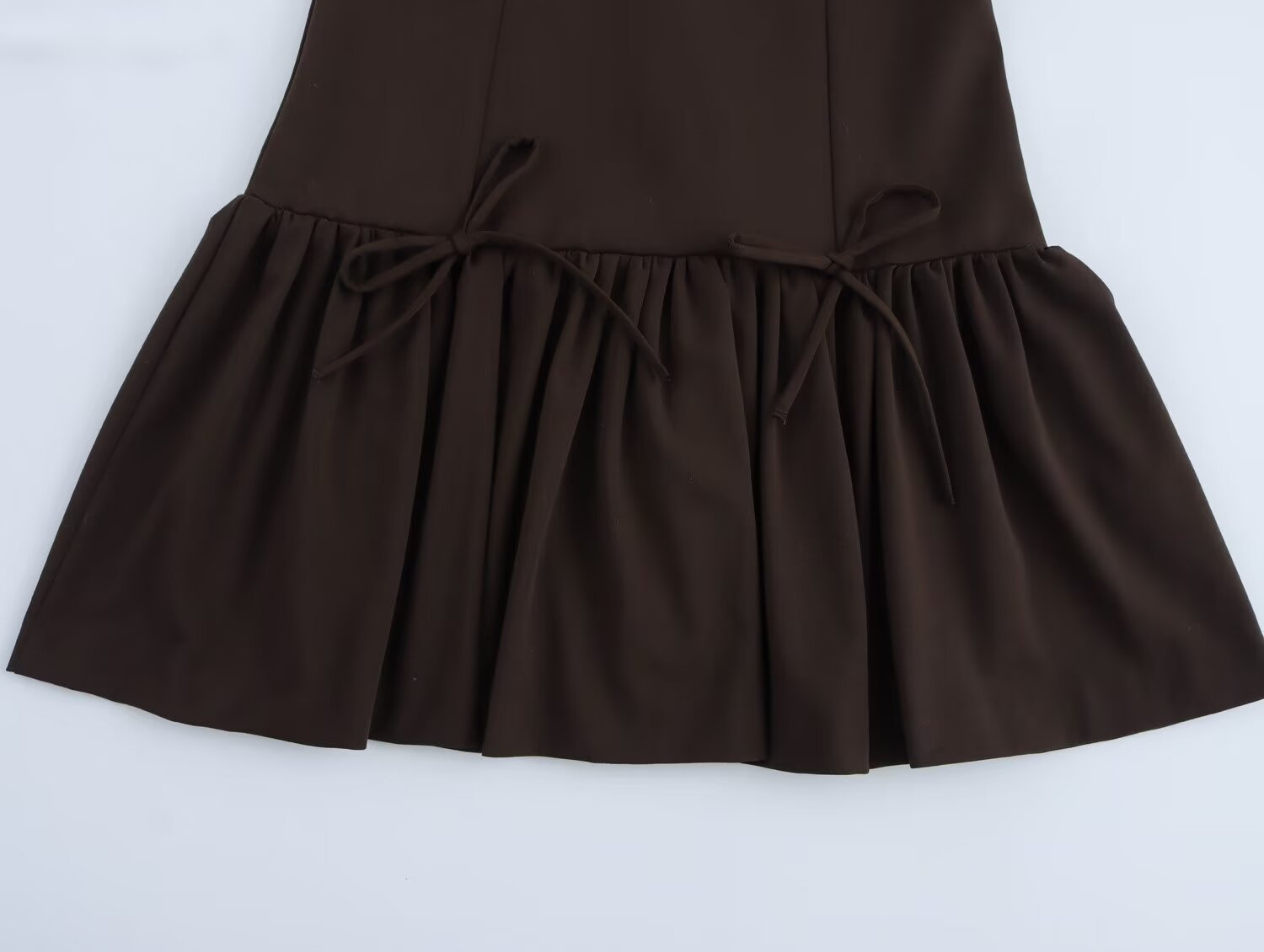 Colors: Black bow dress, navy blue bow dress, off-white bow dress, khaki bow dress, reddish-brown bow dress