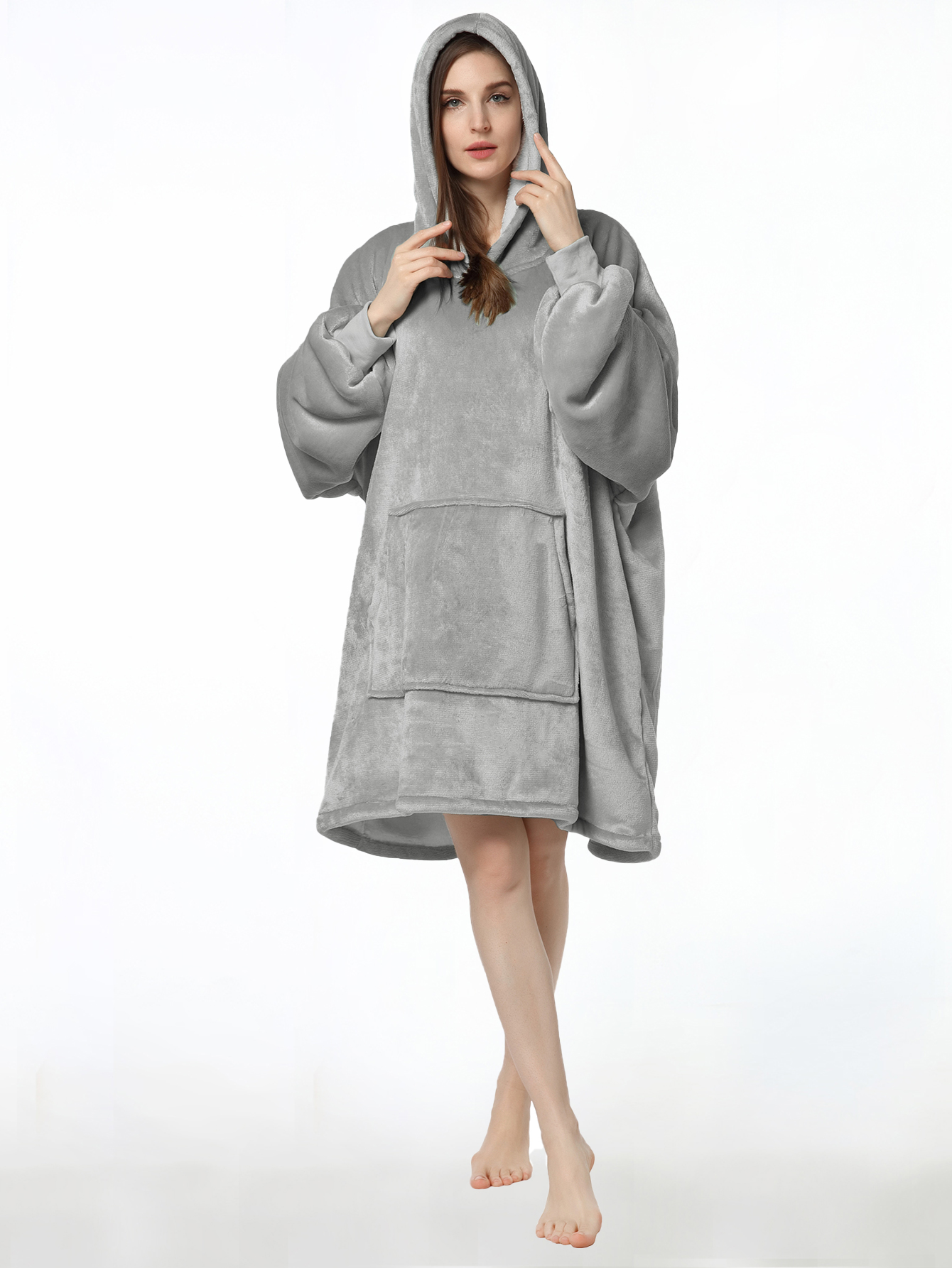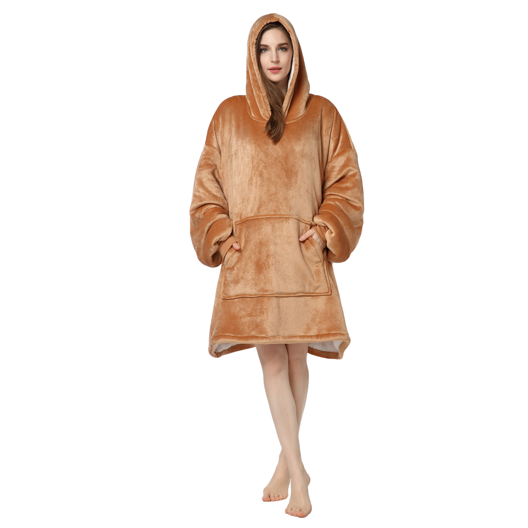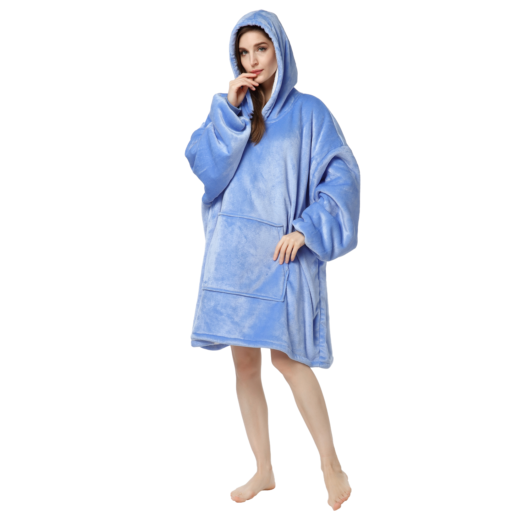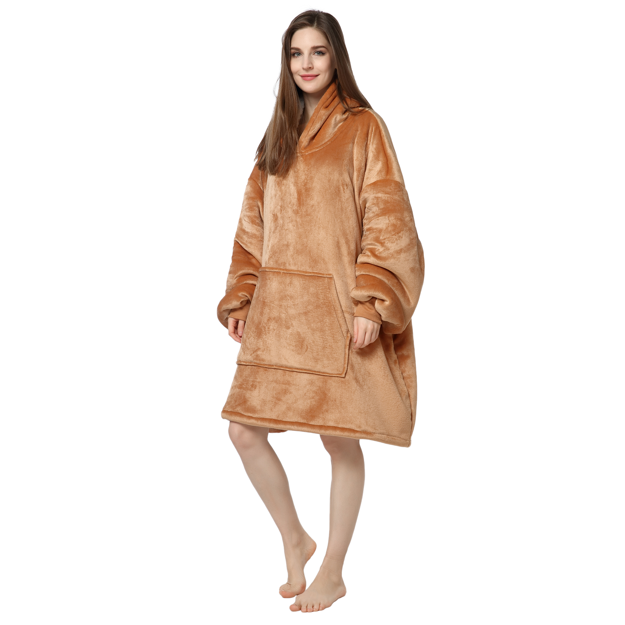 RONGTAI Oversized Wearable Pajamas With Big Pockets,Soft Plush Sweatshirt Hooded Popular Tops One Size Fits