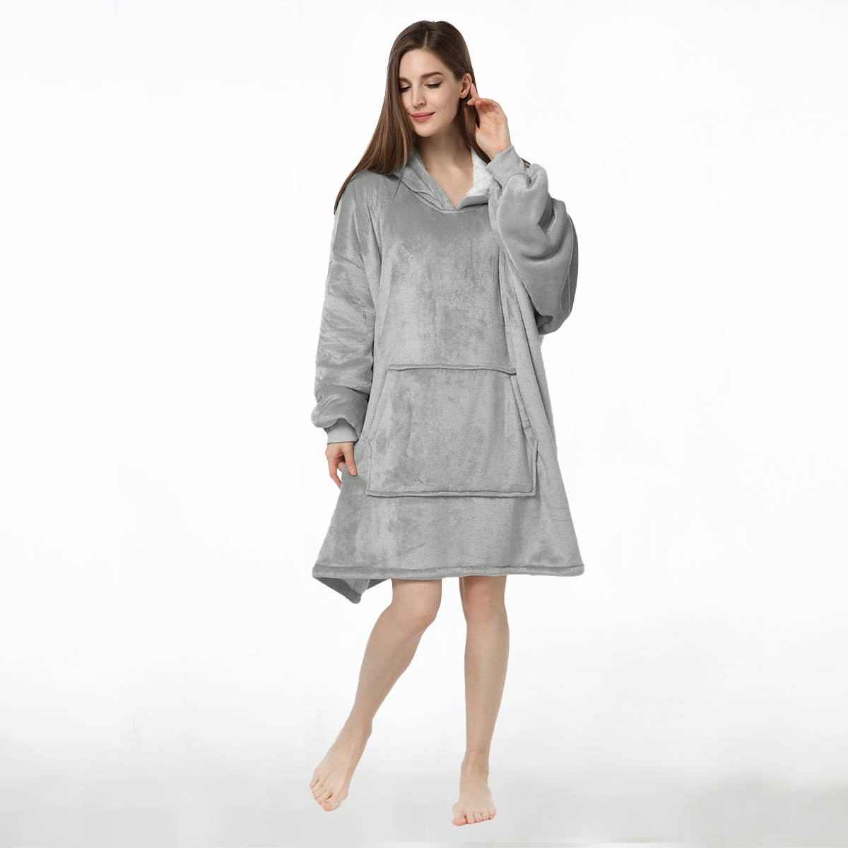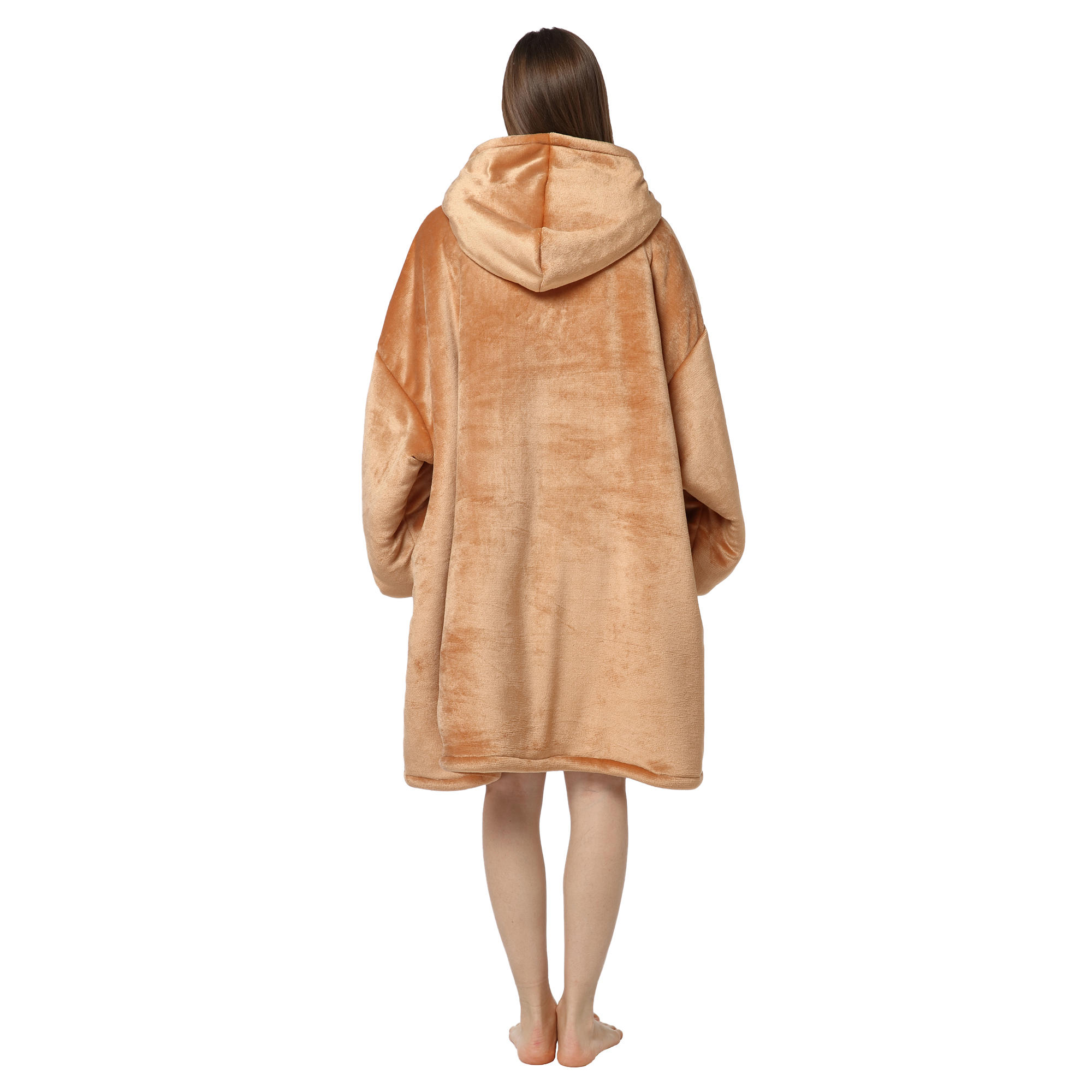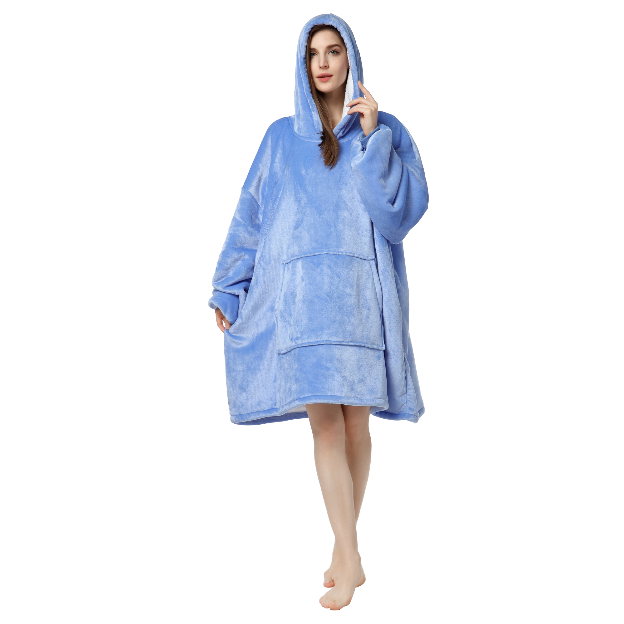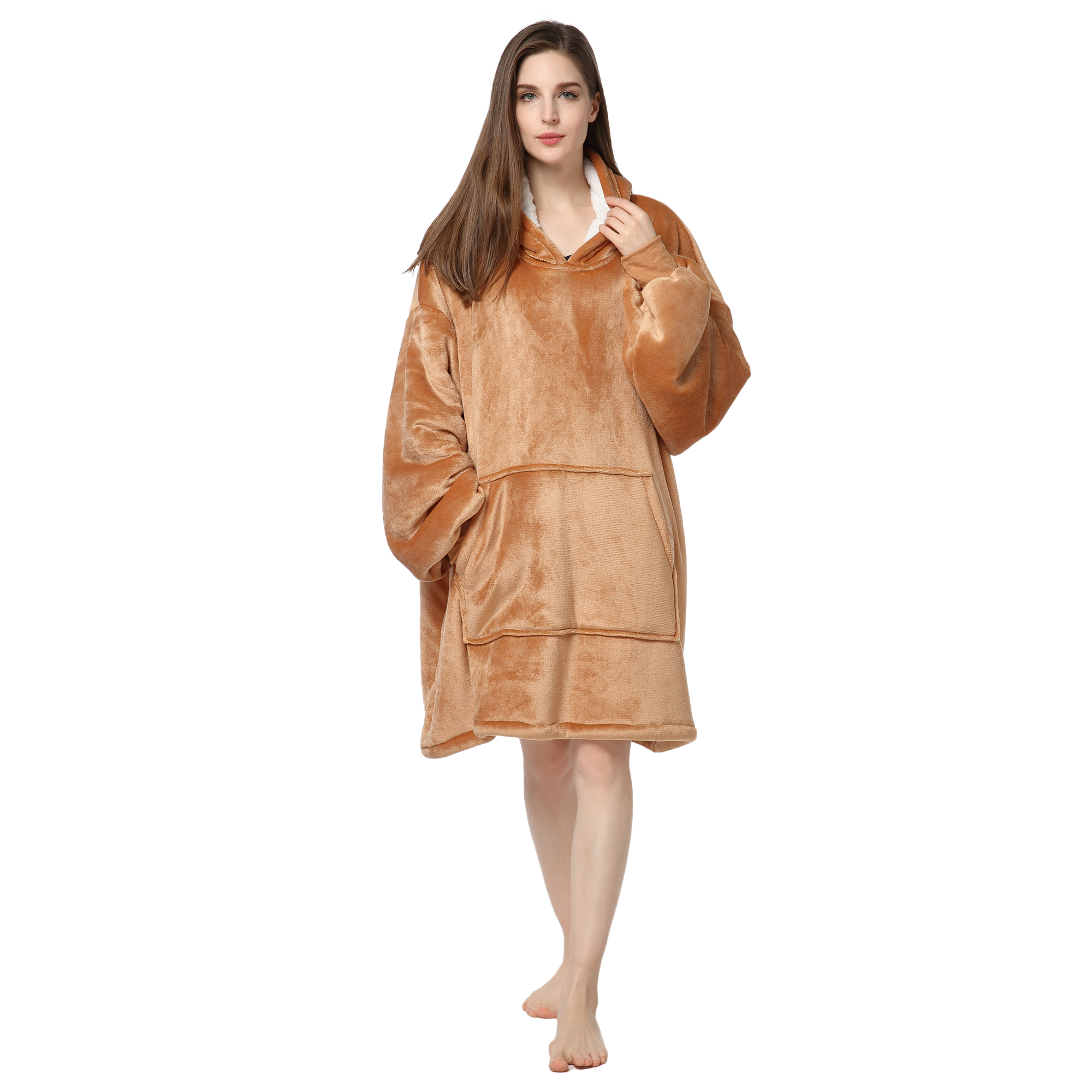RONGTAI Oversized Wearable Pajamas With Big Pockets,Soft Plush Sweatshirt Hooded Popular Tops One Size Fits